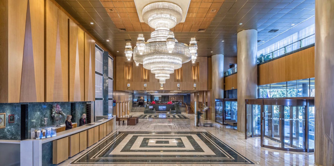 The Divani Caravel is not new, but as we said up front, new or noteworthy hotels. From the outside, this vintage 1970s concrete hulk of a building would appear to be devoid of all charm, but don’t be fooled — could you imagine Charles de Gaulle airport with the circular concrete beast of its 1974 Terminal 1? The Tel Aviv beachfront with the gray fortress of the Carlton? Or LAX without the immutable dreariness of West Century Boulevard? Of course not. You want pretty and pastel all the time? Try Disneyland. Let us remind you that not only was the Divani Caravel the setting for key scenes from 1977’s For the Love of Benji — a film no less culturally significant than Casablanca — but it is the setting for some of the city’s most important events, be they commercial, political, or what have you. Stuff happens here.