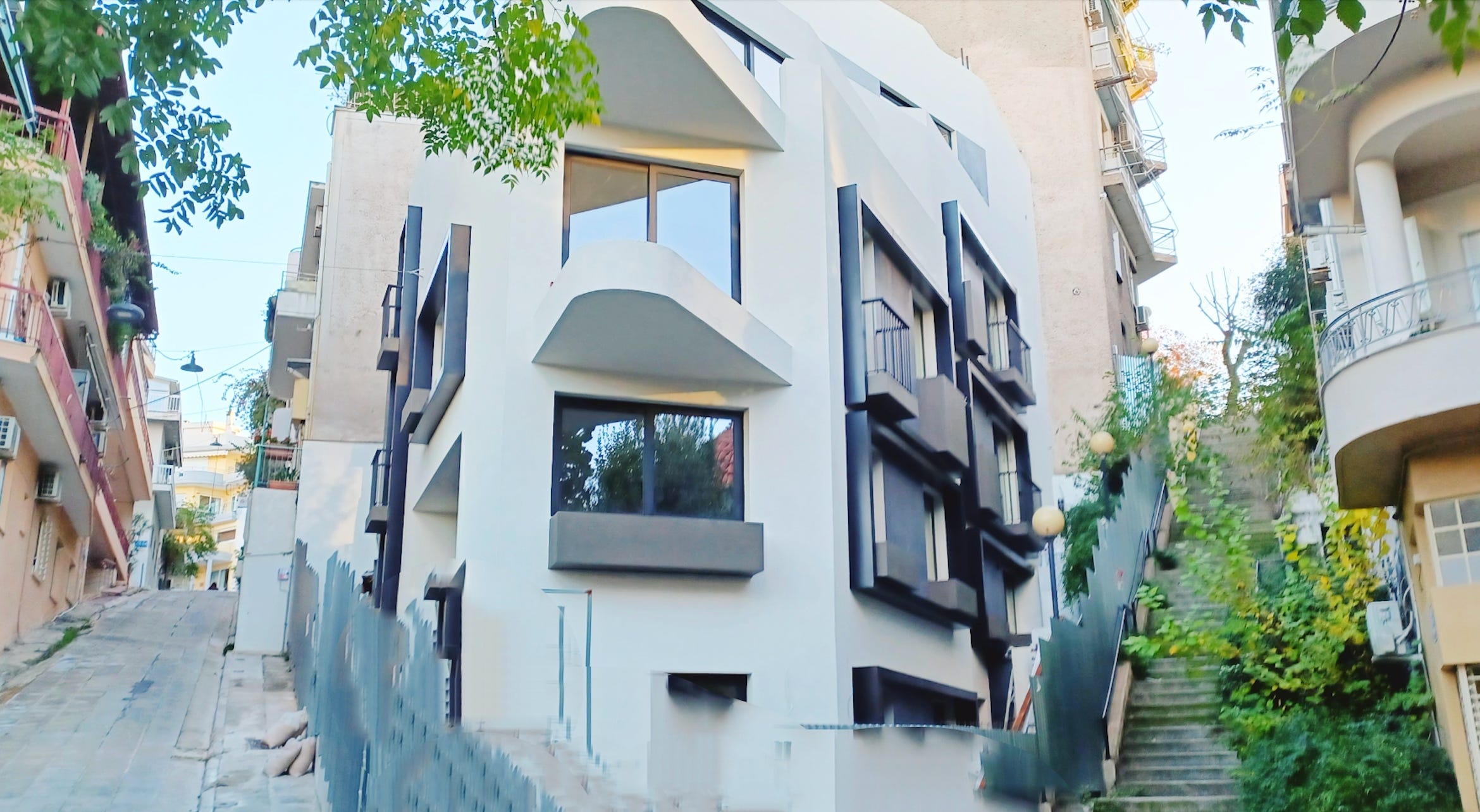 The hottest new boutique hotels in Athens are the ones that haven’t opened yet — but trust us, they’ll be up and running before the Easter Bunny starts making his rounds. In terms of where the action, the unlikely, decreasingly scruffy neighborhood of Neos Kosmos is heartbeat city. On a recent perambulation in those quarters we spotted people gawking at the new build pictured above, which is set to be a boutique hotel with an unusual Acropolis