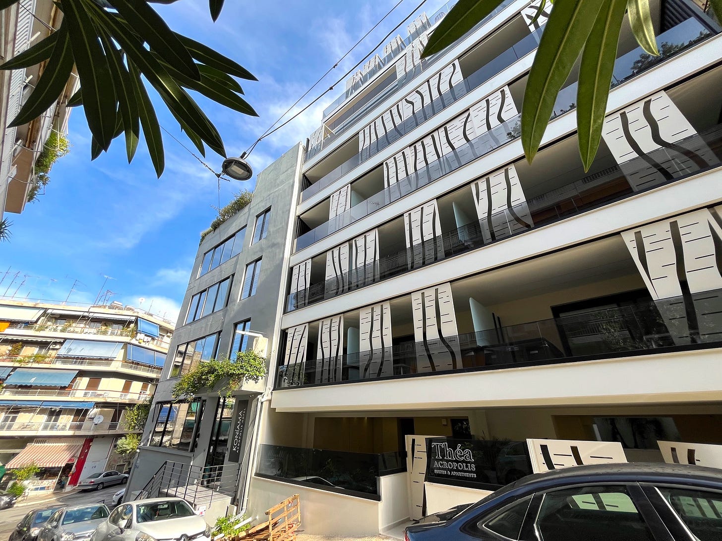 There is a boutique hotel boom going on in Athens — you maybe just haven’t heard about it yet. This is despite the slow-motion global trainwreck that is Airbnb and the post-covid international strong-arming by some of our banal American hotel chains which, like Hilton, are addicted to spawning cutesy new micro-brands & all under the same corporate umbrella without, as you savvy travelers know, actually offering anything new: too bad for them!
