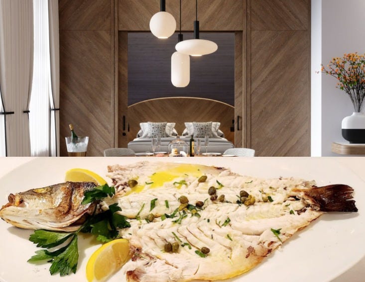 “Well ok, we’ll get back to our award-winning screenplay later. The thing is, seafood is tricky. It’s our view that both cheap fish (always) and sushi (as a matter of principle) are pretty vile, and the latter precept is only more pronounced when people try to attach a luxury hook to it. It’s like saying foie gras is both scrumptious (not) and ethically-sourced (cut to: yucky French habits). So while the world’s honest travel media, or what’s left of it, is already hyperventilating over the next Nobu hotel-sushi depot combo (seems reigning champion of island overtourism Santorini’s the lucky location) we are not. For one thing, De Niro. “\_(ツ)_/¯” was invented for this guy, who like a lot of American dummies I know would probably ban anyone who isn’t an all-knowing radical leftie like himself from one of his odd and overpriced restaurants. For another thing, and more germanely, not only should the fish on your dish not be bony and not be cheap, it should not be snooty and raw either. Oxi!”