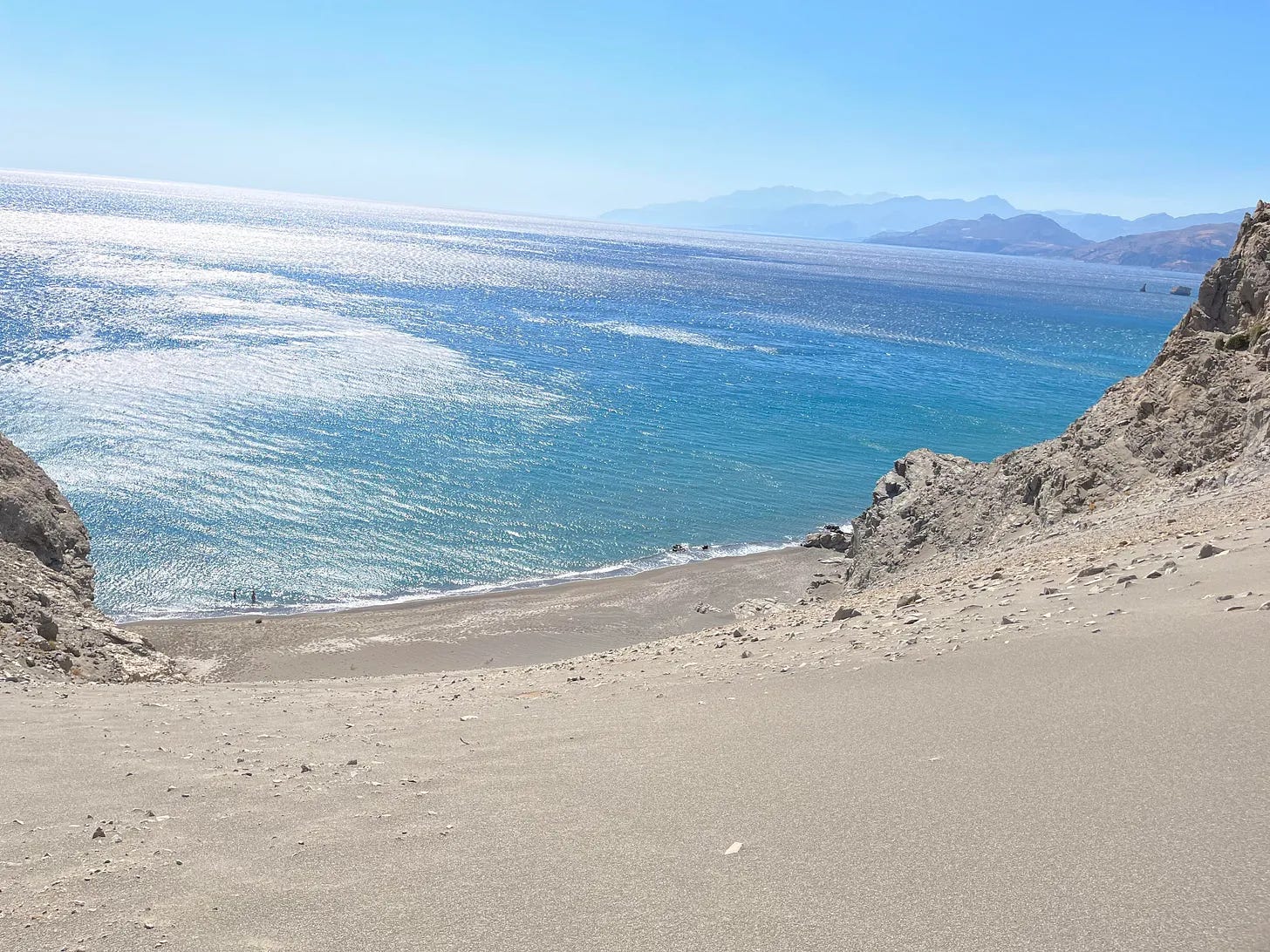 One morning on a whim I drove westward to an impossibly steep and impressively lonely beach with fine silvery sand called Agios Pavlos, or St. Paul. This is what a beach on the moon might look like, if there was water on the moon. And what if there is? Stay a while in this realm of bewitching beaches, haunted Venetian fortresses, and jagged mountain peaks where patches of snow glisten well into July, and see if your mind does not travel to some strange and distant places marked only on maps unknown.