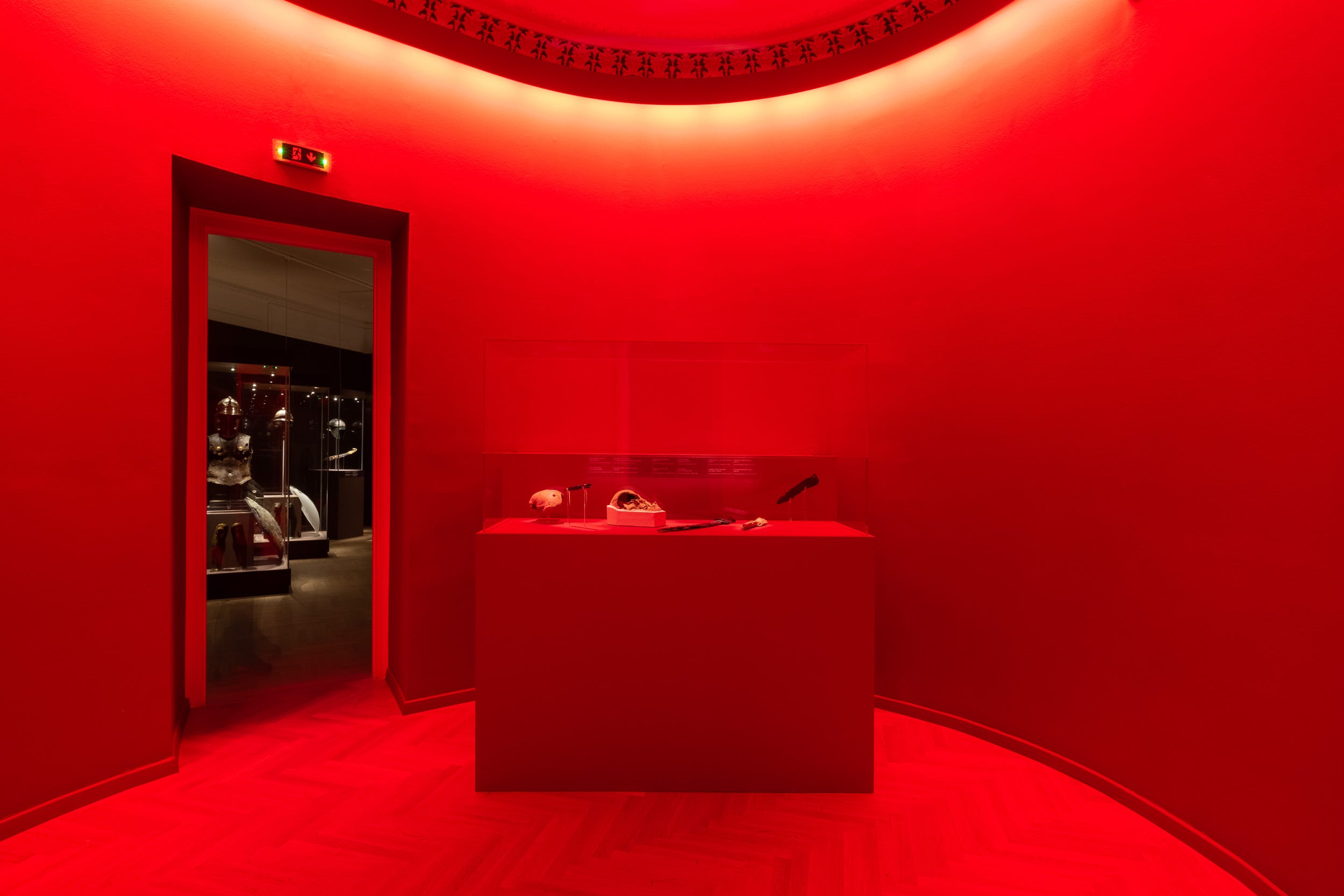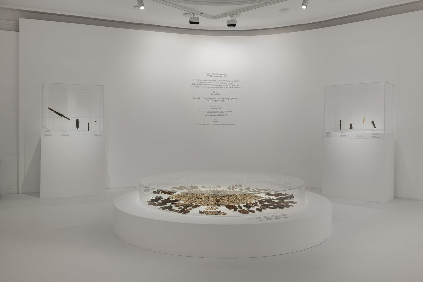 What museum-goers see today are the bones and ossified ashes of the approximately 500 soldiers who were burned, now arranged under a circular glass showcase. Also on display are some of the sword handles, spear tips, epaulets, knives — and even a wreath — retrieved from the excavation site.