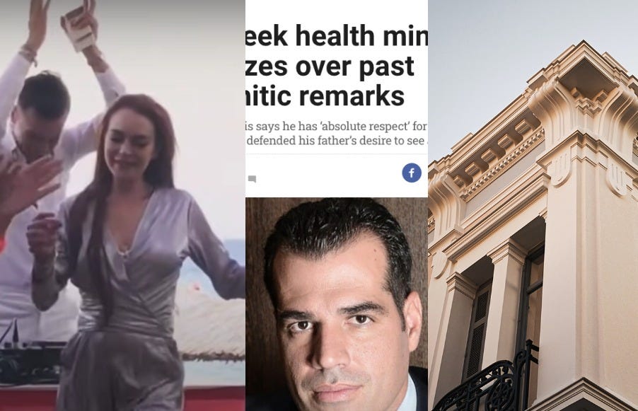 MYKONOS CONFIDENTIAL: The Curse of Lindsay Lohan, the week a Greek minister became American and best of all, a new hotel goes for the bold in Santorini